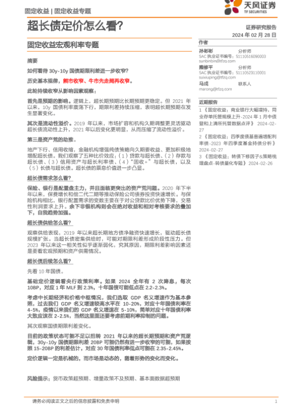 【天风证券】【20240228】固定收益宏观利率专题:超长债定价怎么看?-18页 行业研究