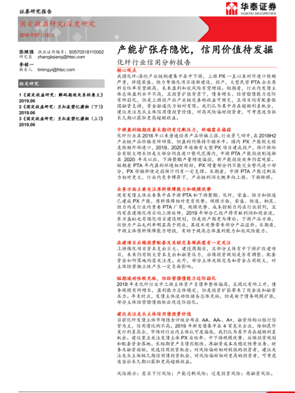 【华泰证券】【20190702】化纤行业信用分析报告:产能扩张存隐忧,信用价值待发掘-17页 行业研究