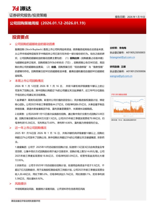 【源达信息】【202601】公司回购策略周报(2026.01.12-2026.01.19)-8页 证券期货研究报告