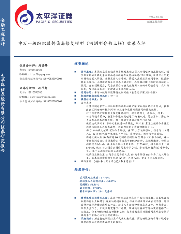 【太平洋证券】【202603】申万一级纺织服饰偏离修复模型(回调型分档止损)效果点评-4页 证券期货研究报告