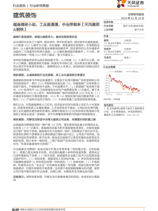 【天风证券】【20190116】越南调研小结:工业路漫漫,中冶带钢来-10页 行业研究