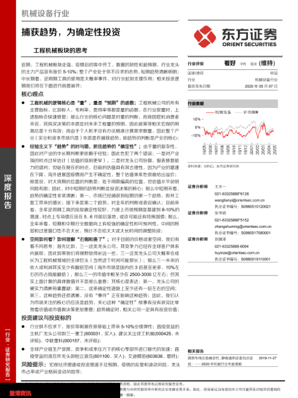 【东方证券】【20200507】机械设备行业:工程机械板块的思考:捕获趋势,为确定性投资-22页 行业研究