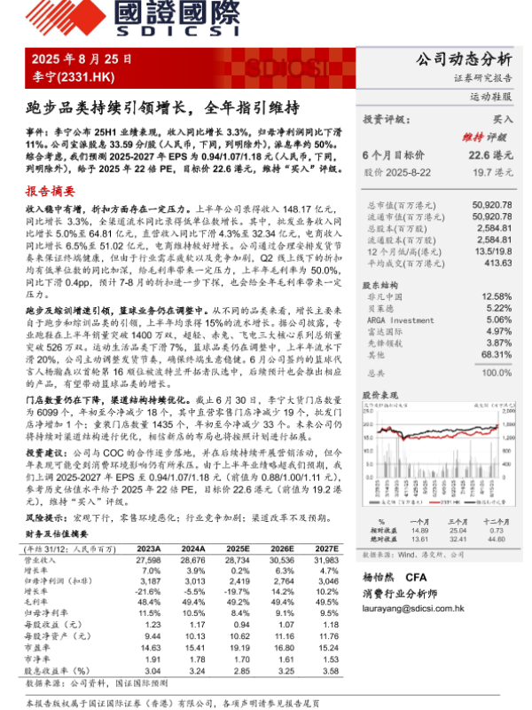 【国证国际】【20250825】李宁-跑步品类持续引领增长,全年指引维持-4页 公司研究