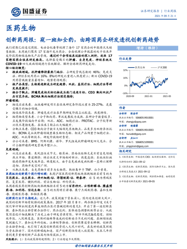 【国盛证券】【20210921】创新药周报:窥一斑知全豹,由跨国药企研发透视创新药趋势-20页 行业研究