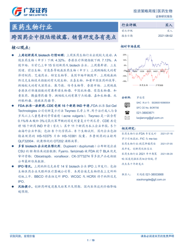 【广发证券】【20210802】医药生物行业投资策略周报:跨国药企中报陆续披露,销售研发各有亮点-19页 行业研究