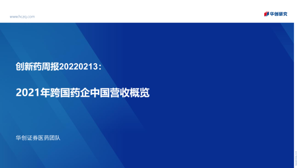 【华创证券】【20220213】2021年跨国药企中国营收概览-26页 行业研究