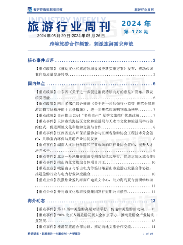 【智研咨询监测项目部】【202405】旅游行业周刊:跨境旅游合作频繁,刺激旅游需求释放-19页 行业研究