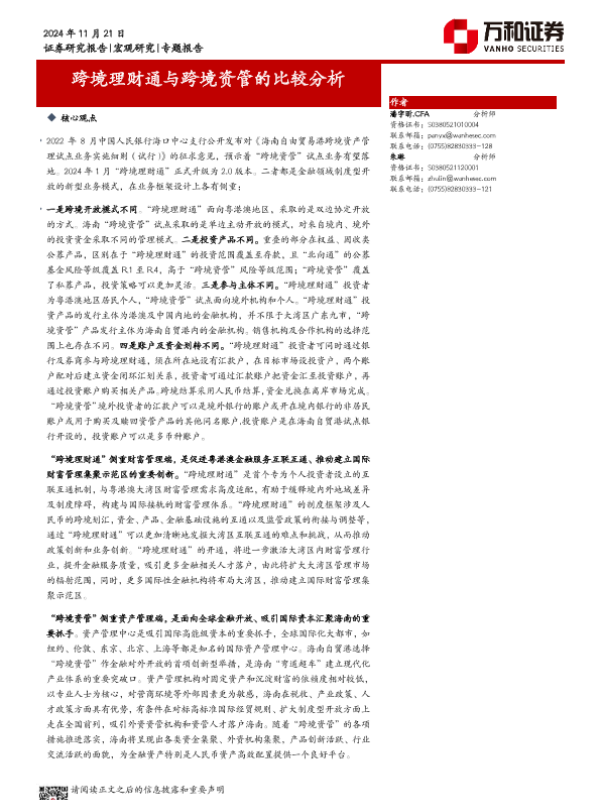 【万和证券】【20241121】跨境理财通和跨境资管的比较分析-11页 行业研究