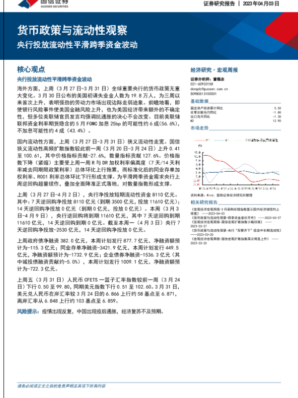 【国信证券】【20230404】货币政策与流动性观察:央行投放流动性平滑跨季资金波动-14页 行业研究