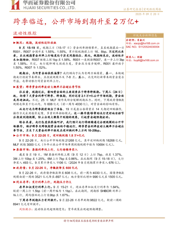 【华西证券】【202509】流动性跟踪:跨季临近,公开市场到期升至2万亿+-17页 证券期货研究报告