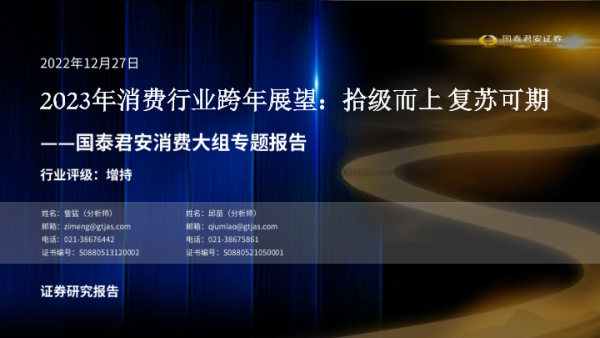 【国泰君安证券】【20221227】2023年消费行业跨年展望:拾级而上,复苏可期-57页 行业研究