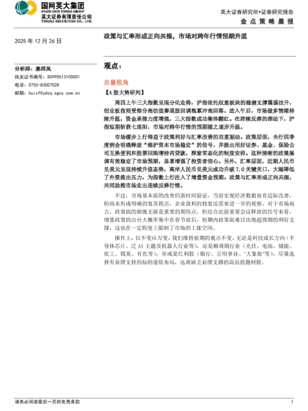 【YINGDA SECURITIES CO.<D.】【202512】政策与汇率形成正向共振,市场对跨年行情预期升温-4页 证券期货研究报告