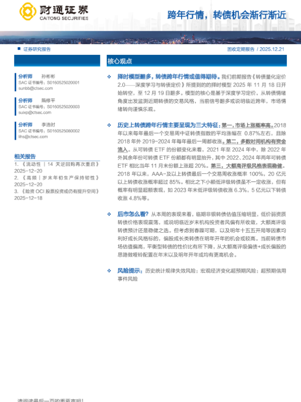 【财通证券】【202512】跨年行情,转债机会渐行渐近-13页 证券期货研究报告