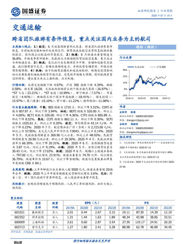 【国盛证券】【20200719】交通运输行业周报:跨省团队旅游有条件恢复,重点关注国内业务为主的航司-21页 行业研究