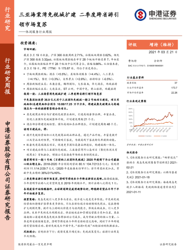 【申港证券】【20210321】三亚海棠湾免税城扩建 二季度跨省游引领市场复苏-12页 行业研究