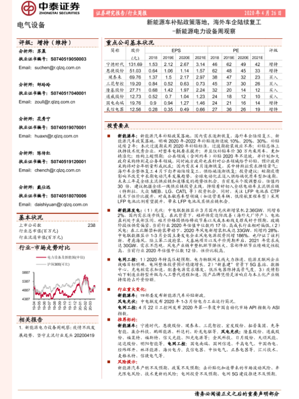 【中泰证券】【20200426】20200426-中泰证券-新能源电力设备周观察:新能源车补贴政策落地,海外车企陆续复工-17页 行业研究