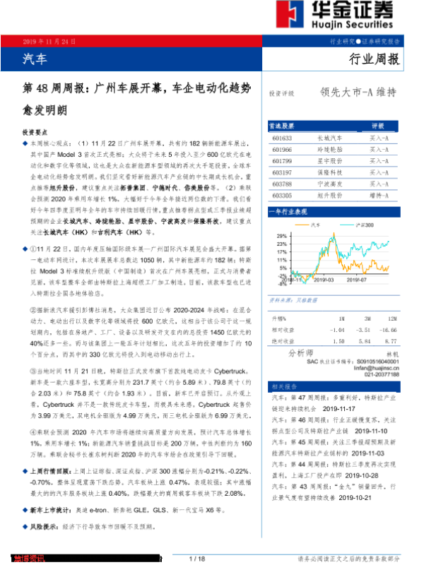 【华金证券】【20191124】汽车第48周周报:广州车展开幕,车企电动化趋势愈发明朗-18页 行业研究