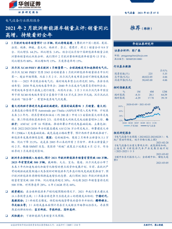 【华创证券】【20210307】2021年2月欧洲新能源车销量点评:销量同比高增,持续看好全年-15页 行业研究