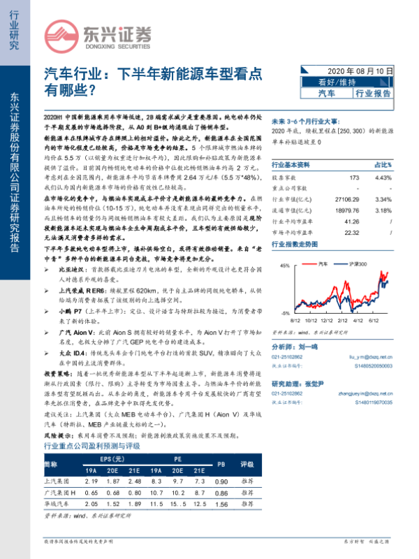 【东兴证券】【20200810】汽车行业:下半年新能源车型看点有哪些?-12页 行业研究