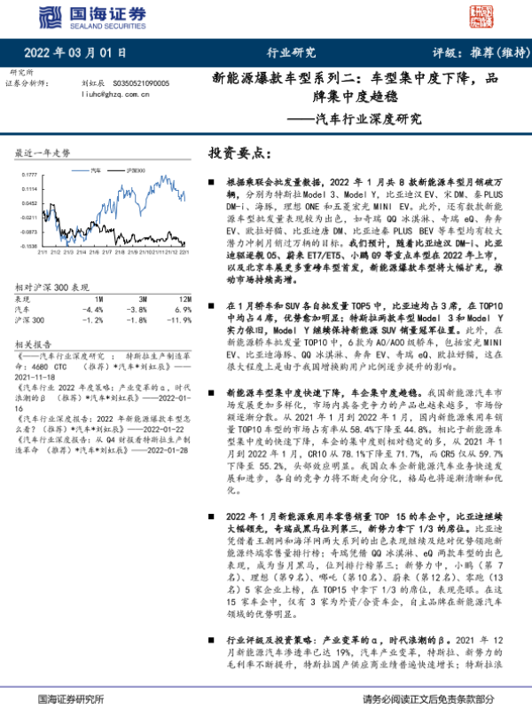 【国海证券】【20220301】汽车行业深度研究:新能源爆款车型系列二,车型集中度下降,品牌集中度趋稳-20页 行业研究