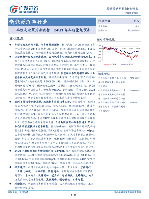 【广发证券】【20240415】新能源汽车行业:车型与政策周期共振,24Q1电车销量超预期-37页 行业研究