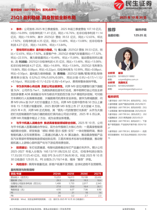 【国信证券】【202509】星宇股份(601799.SH)-单二季度净利润同比增长9%,新订单、新产能、新产品持续突破-15页 公司研究