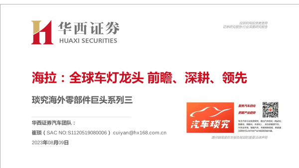 【华西证券】【20230809】华西证券:琰究海外零部件巨头系列三-海拉-全球车灯龙头前瞻、深耕、领先-96页 行业研究