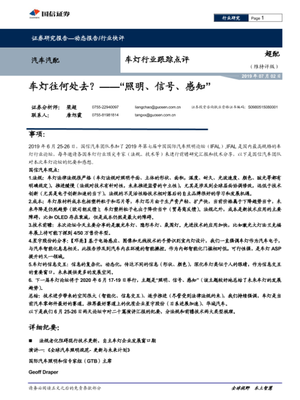 【国信证券】【20190702】20190702-国信证券-车灯行业跟踪点评:车灯往何处去? ——“照明、信号、感知”-13页 行业研究