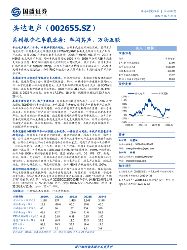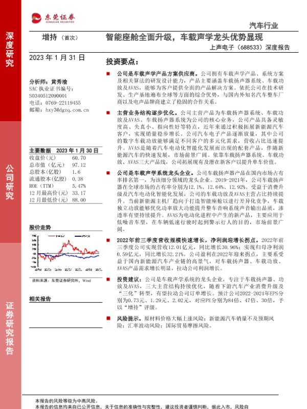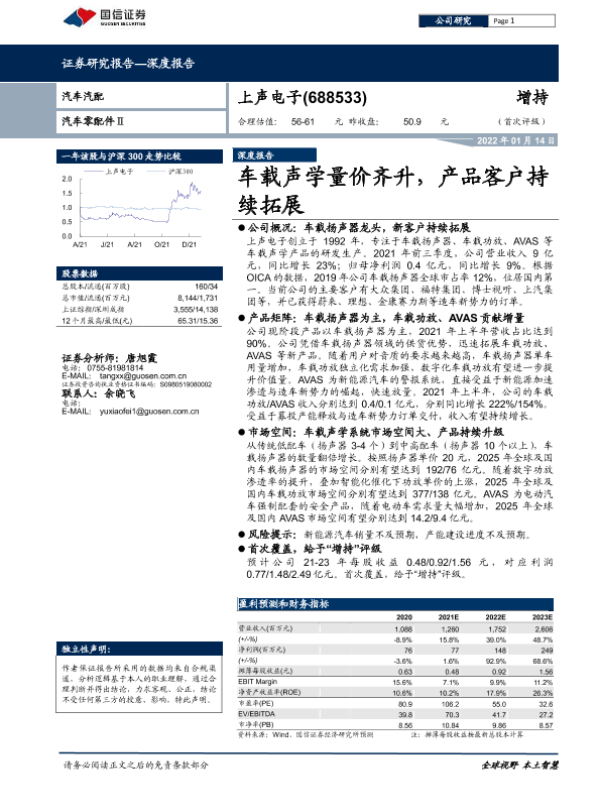 【国信证券】【20220114】上声电子-688533.SH-车载声学量价齐升,产品客户持续拓展-38页 行业研究