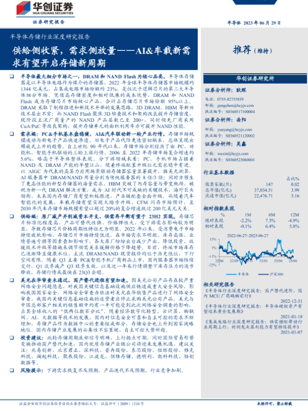 【华创证券】【20230629】半导体存储行业深度研究报告:供给侧收紧,需求侧放量——AI&车载新需求有望开启存储新周期-38页 行业研究