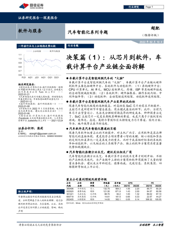 【国信证券】【20220210】软件与服务行业汽车智能化系列专题:决策篇(1),从芯片到软件,车载计算平台产业链全面拆解-46页 行业研究