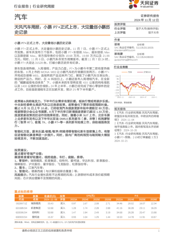【天风证券】【20241112】天风汽车周报:小鹏P7+正式上市,大定量创小鹏历史记录-14页 行业研究