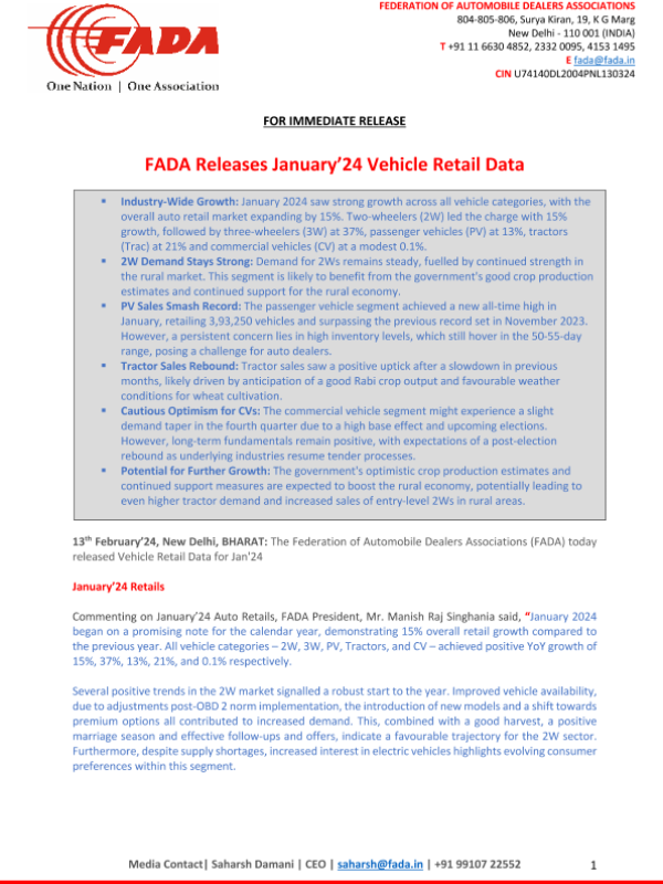 Federation of Automobile Dealers Associations (FADA) 交通运输仓储邮政 2024年 PDF 2.51 MB