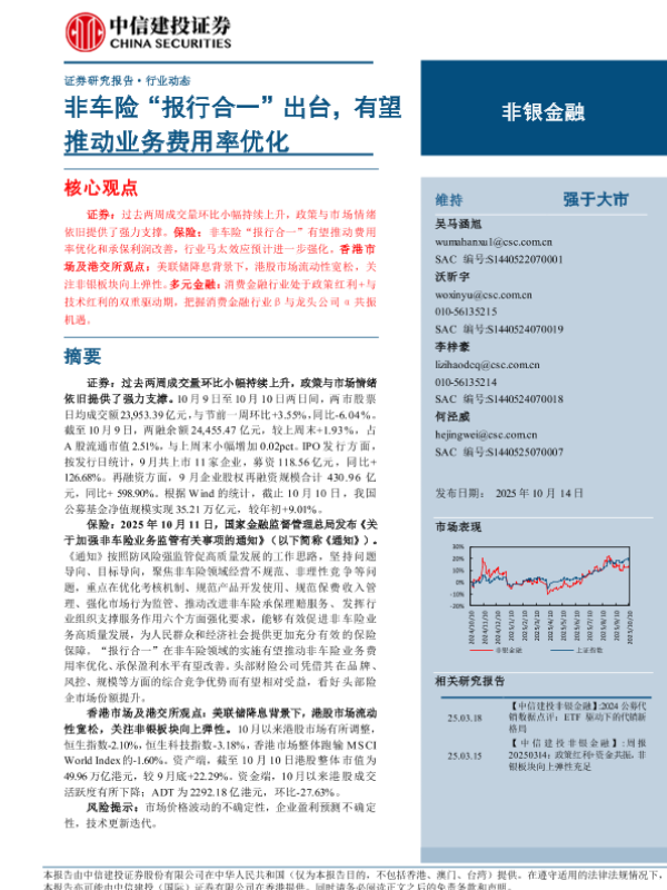 【中信建投证券】【202510】非银金融行业动态:非车险“报行合一”出台,有望推动业务费用率优化-28页 证券期货研究报告