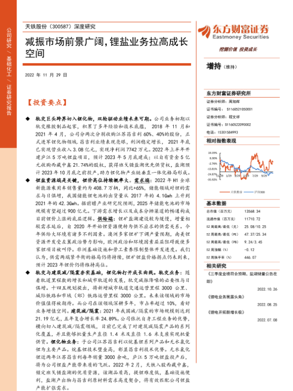 【东方财富证券】【20221129】天铁股份(300587)深度研究:减振市场前景广阔,锂盐业务拉高成长空间-25页 行业研究