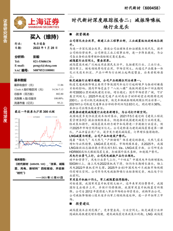【上海证券】【20220128】时代新材深度跟踪报告二:减振降噪板块行业龙头-26页 行业研究