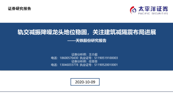 【太平洋证券】【20201009】天铁股份研究报告:轨交减振降噪龙头地位稳固,关注建筑减隔震布局进展-20页 行业研究