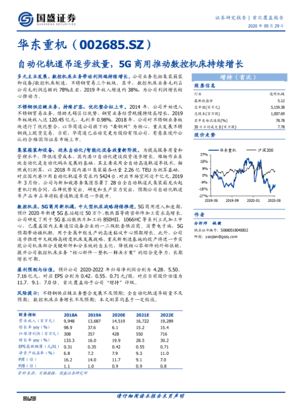 【国盛证券】【20200529】自动化轨道吊逐步放量,5G商用推动数控机床持续增长-22页 行业研究