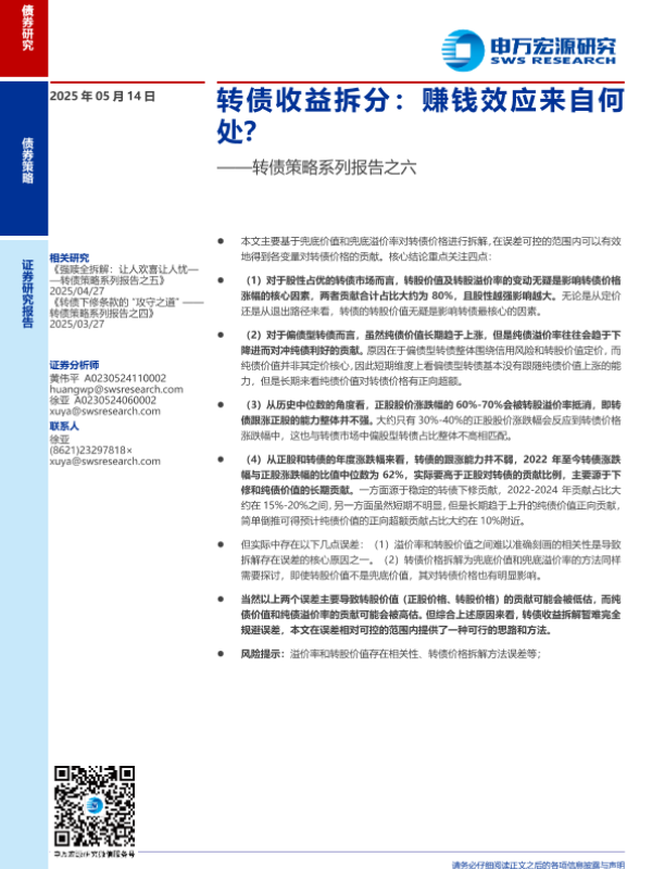 【申万宏源】【20250514】转债收益拆分,赚钱效应来自何处?-10页 证券期货研究报告