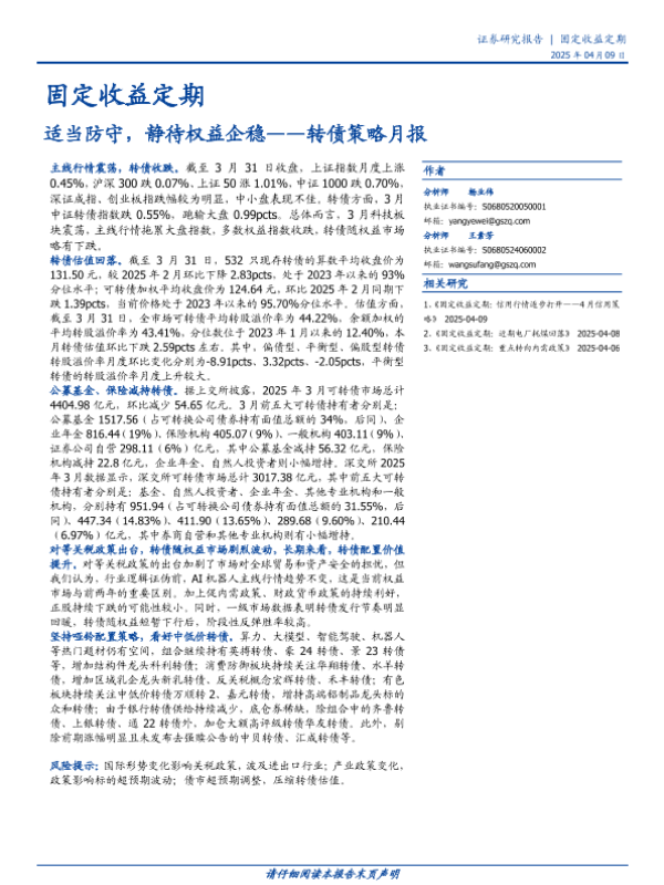 【国盛证券】【20250409】转债策略月报:适当防守,静待权益企稳-11页 证券期货研究报告
