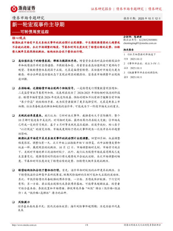 【浙商证券】【202510】新一轮宏观事件主导期——可转债周度追踪-8页 证券期货研究报告