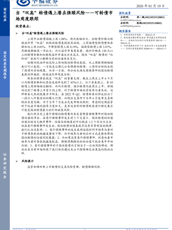 【华福证券】【202601】当“双高”转债遇上潜在强赎风险——可转债市场周度跟踪-10页 证券期货研究报告