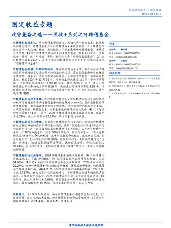 【银河证券】【20250429】“固收+”基金2025年1季报分析:规模整体回升,高波策略占优-24页 证券期货研究报告