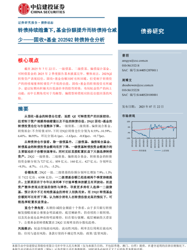 【中信建投证券】【20250722】转债持续缩量下,基金份额提升而转债持仓减少——固收+基金2025Q2转债持仓分析-10页 证券期货研究报告