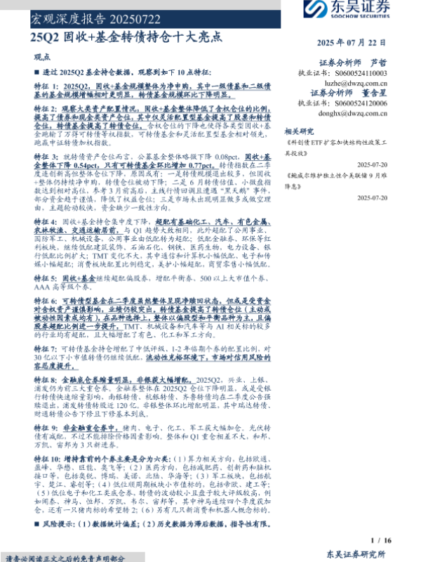 【东吴证券】【20250722】25Q2固收+基金转债持仓十大亮点-16页 宏观策略