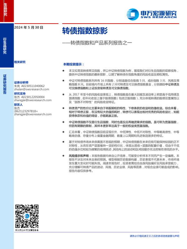 【申万宏源】【20240530】转债指数和产品系列报告之一:转债指数掠影-13页 行业研究