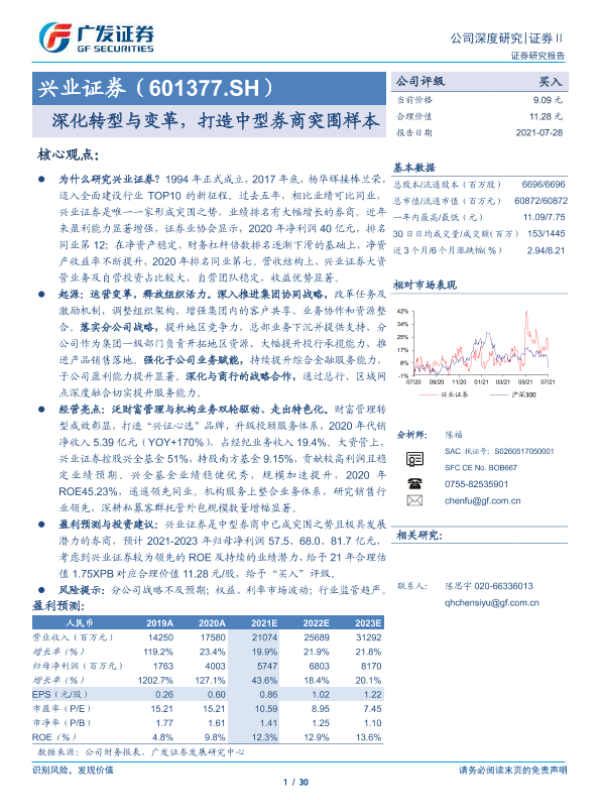 【广发证券】【20210728】深化转型与变革,打造中型券商突围样本-30页 行业研究