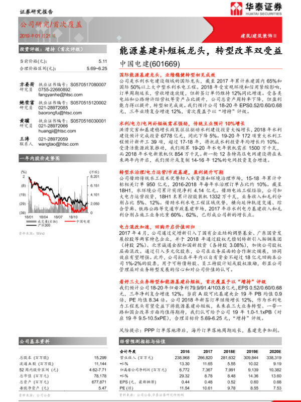 【华泰证券】【20190121】中国电建-601669.SH-能源基建补短板龙头,转型改革双受益-26页 行业研究