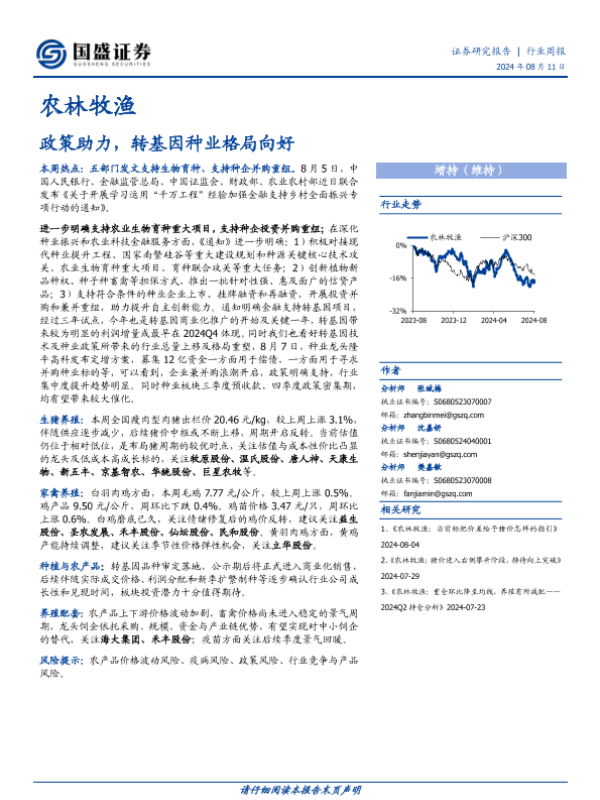 【国盛证券】【20240811】20240811-国盛证券-农林牧渔行业周报:政策助力,转基因种业格局向好-13页 行业研究