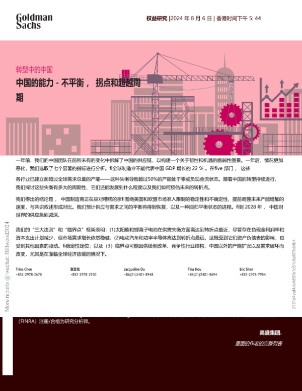 【Goldman Sachs】【20240806】变革中的中国:聚焦产能周期_面对不均衡、判断转折点、穿越长周期-35页 行业研究